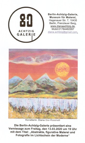 Berlin-Achtzig-Galerie, VERNISSAGE am 13.03.2020, Ausstellung vom 13.03. bis 15.04.2020 Veröffentlicht am 8. März 2020 von Diana Gier