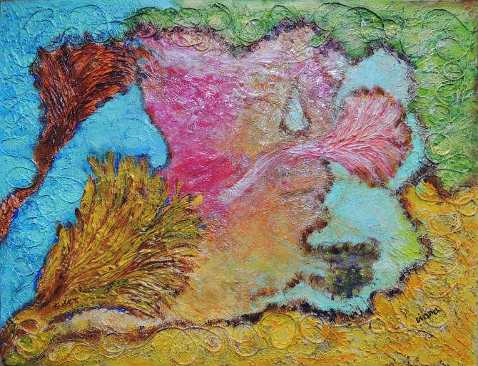 UNTERWASSERWELT, Collage, Acryl auf Leinwand, 80 x 60, BN 2322