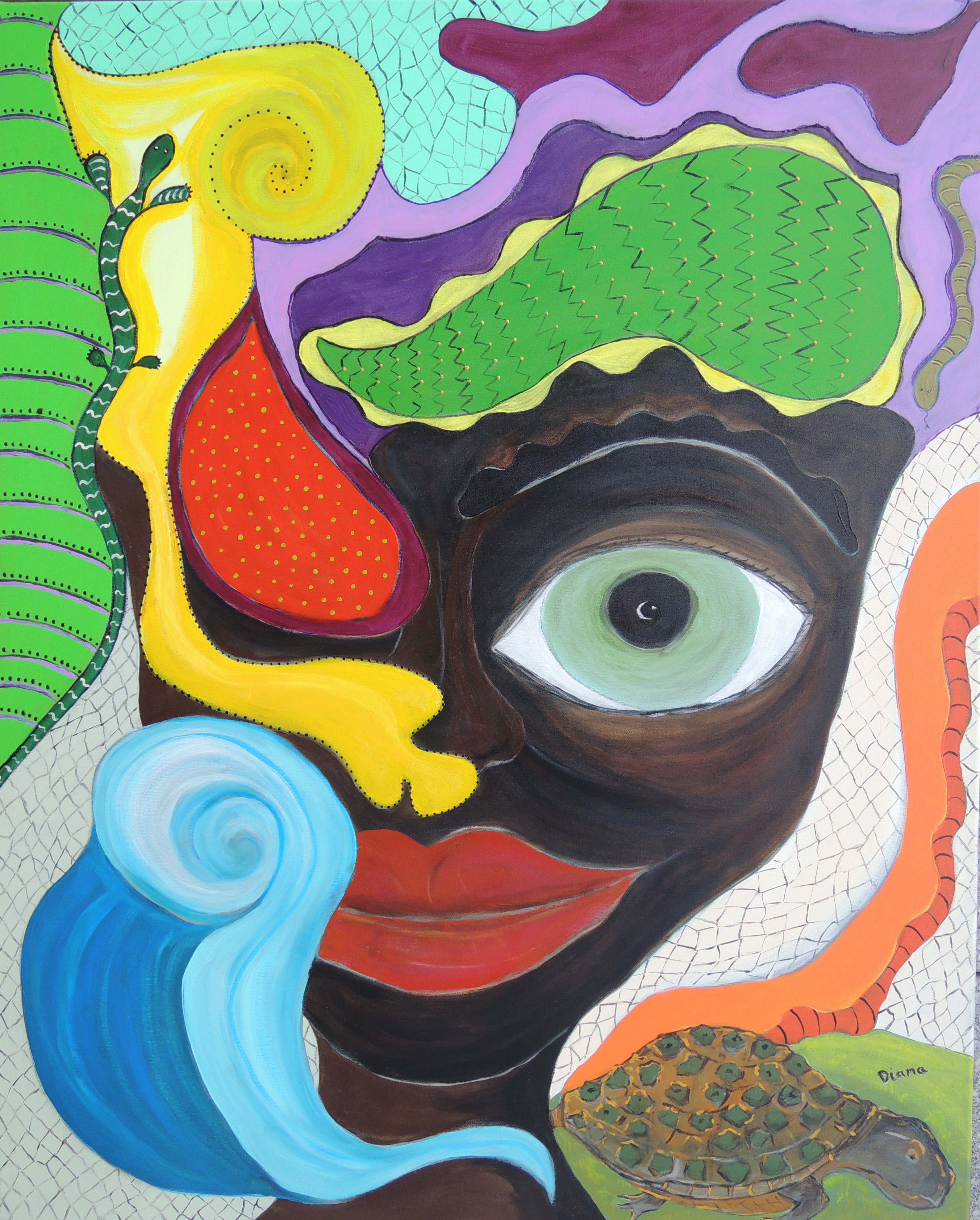 DIE VOODOO PRIESTERIN, Mischtechnik, Acryl auf Leinwand 100 x 80, BN 2241