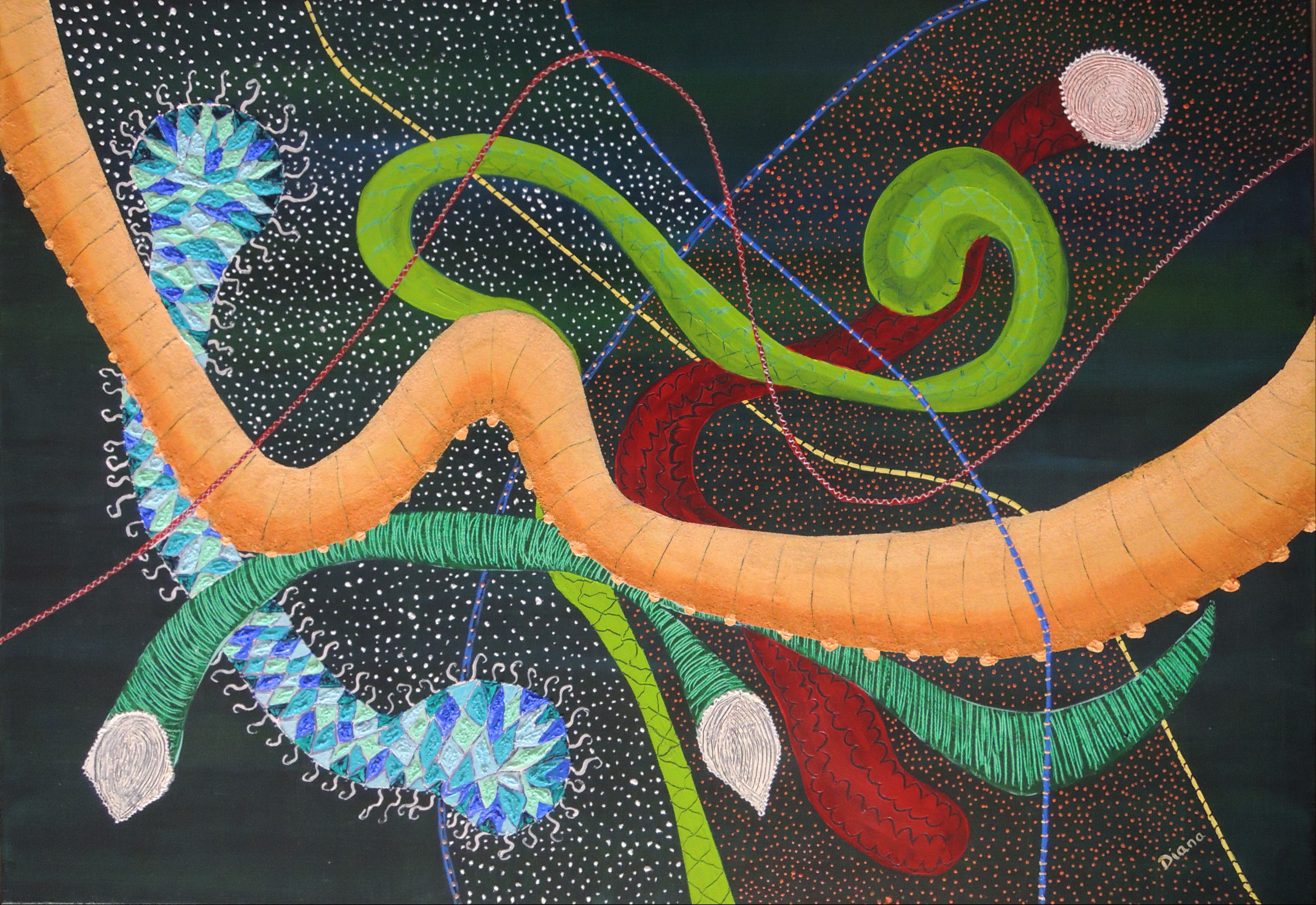 BN 2214 KONNEKTIVITÄT DER ELEMENTE, Acryl, Mischtechnik auf Leinwand, 70 x 100