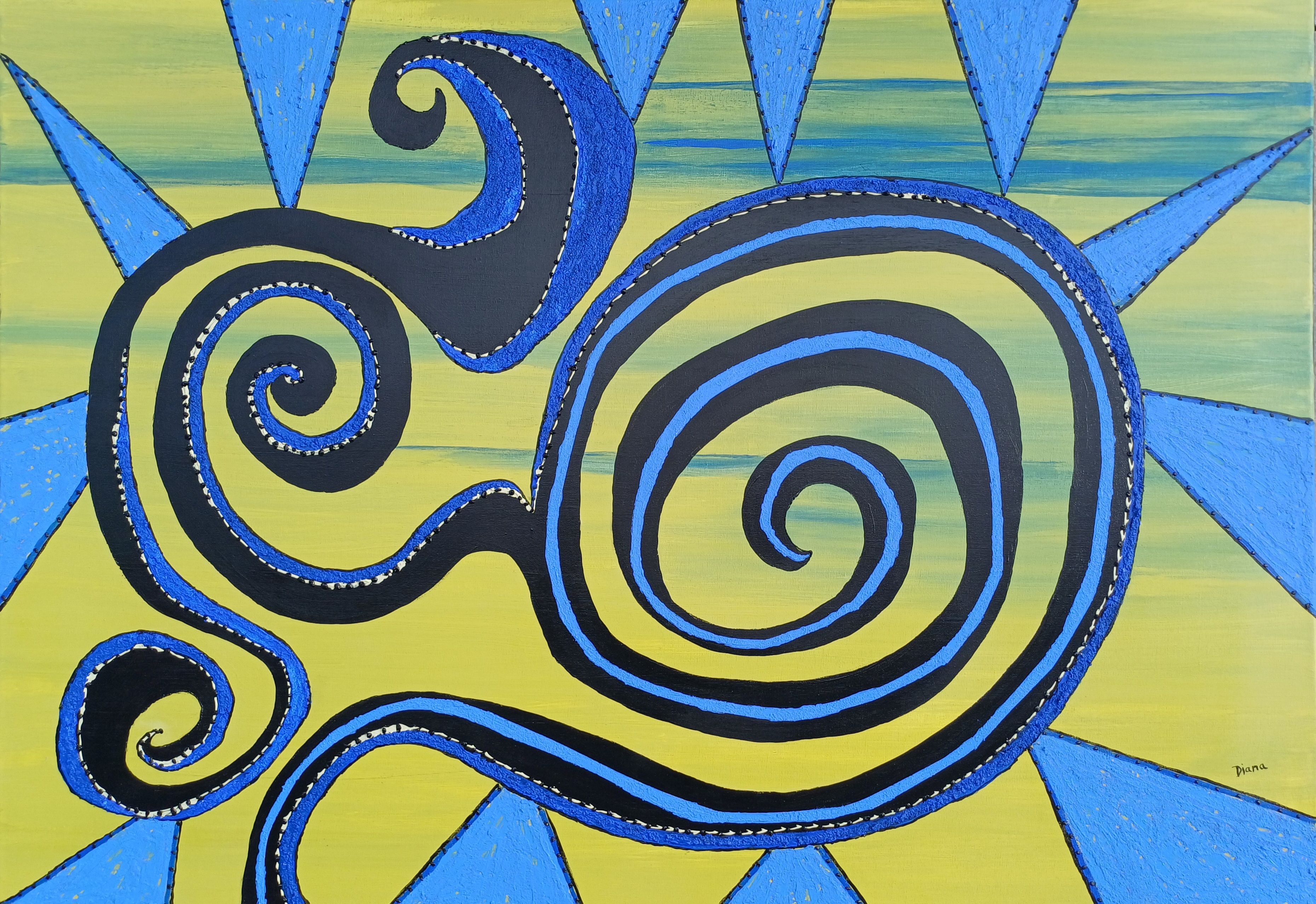 SUPREMATISMUS BLAU-SCHWARZ-GELB, Mischtechnik, Acryl auf Leinwand, 70 x 100, BN 2175