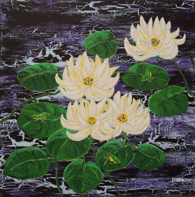 SEEROSEN IM MONDSCHEIN, Acryl auf Leinwand, 50 x 50, BN2249