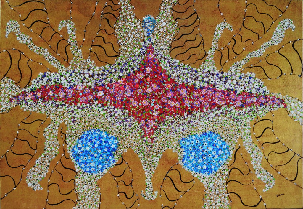 BN 2176, DIE BEGRÜSSUNG DES FRÜHLINGS, Acryl, Mixed Media auf Leinwand, 70 cm x 100 cm