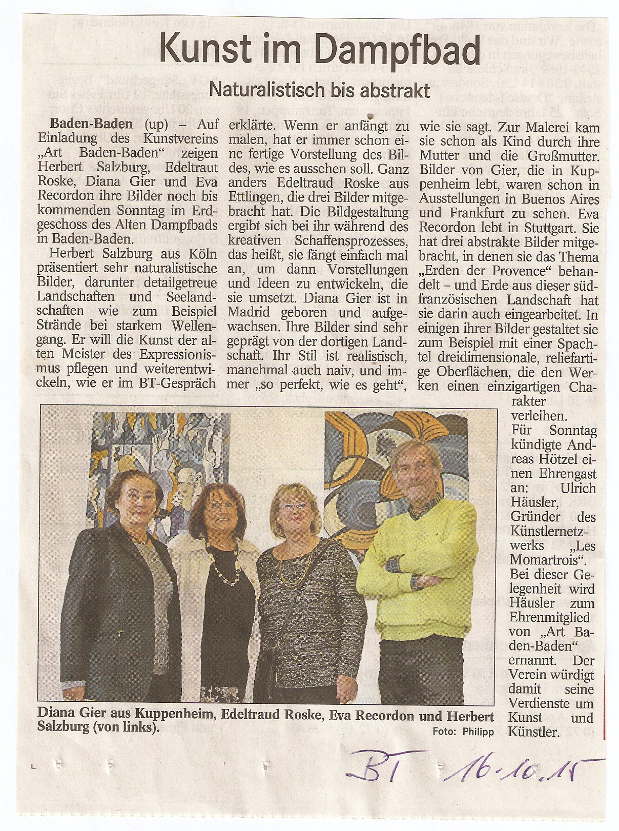 Badisches Tagblatt, Vernissage 11.Okt. 2015, im